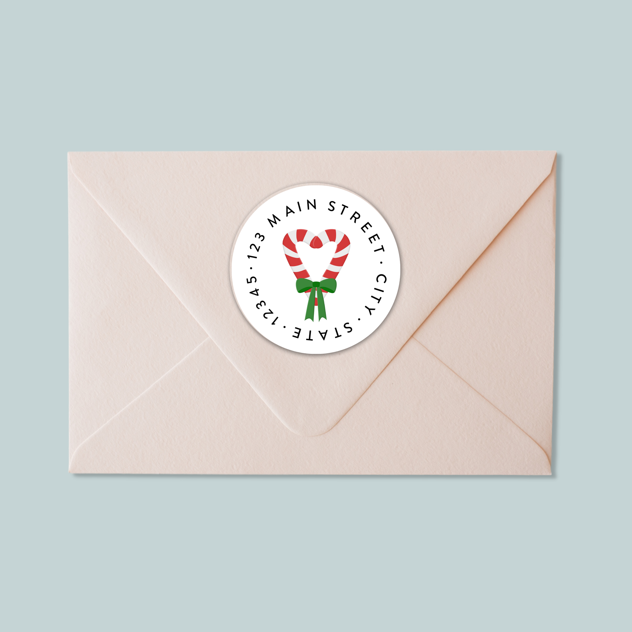 Candy cane design personalized return address labels are perfect for holiday cards. These fun stickers with hand-drawn artwork make sending your new address in style easy and festive for friends and family.
