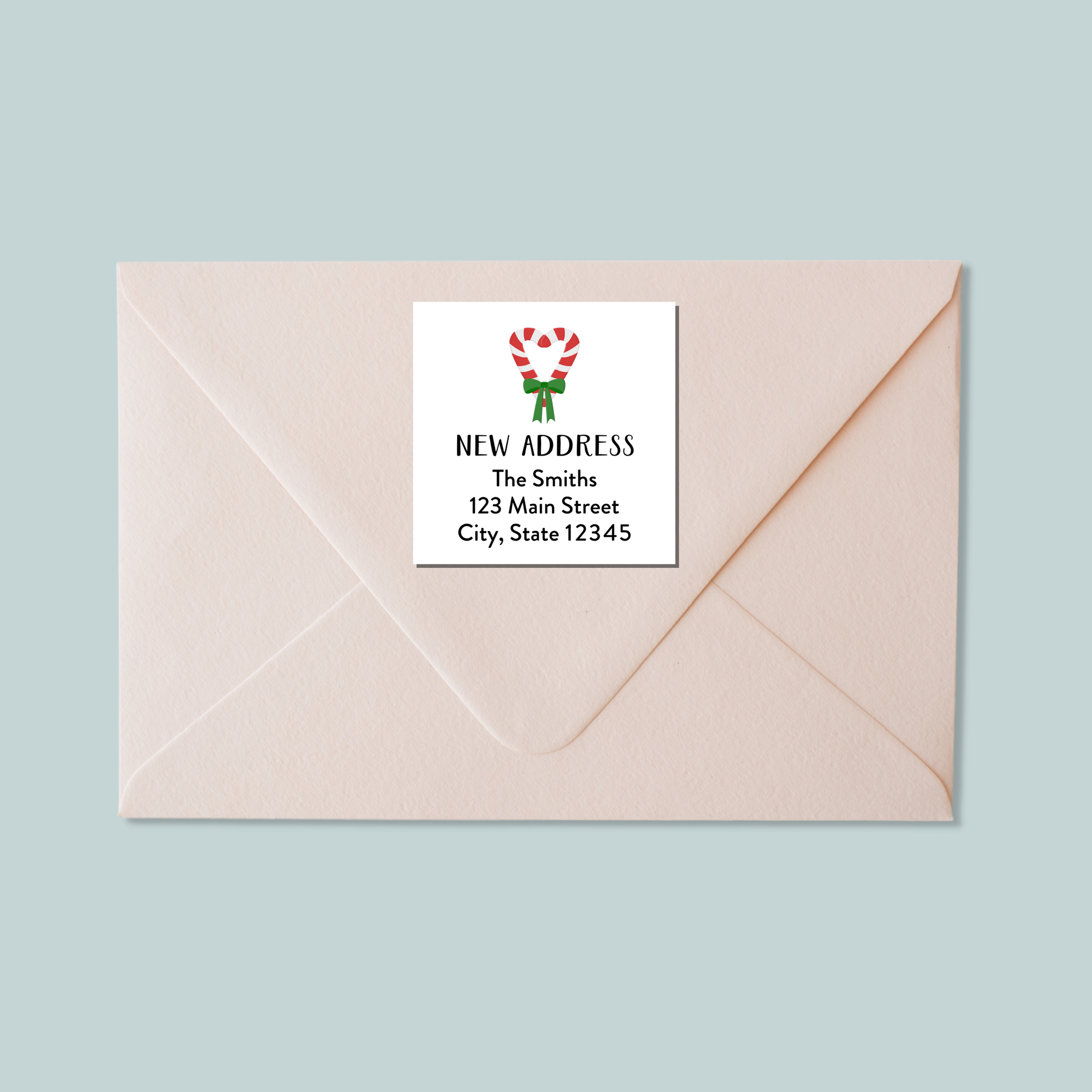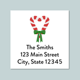 Adorable candy cane design personalized return address labels are perfect for holiday cards. These fun stickers with hand-drawn artwork make sending your new address in style easy and festive for friends and family.