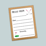 Hand drawn pink golf design featuring simple lines that make writing notes easy and fun for young children. Fill-in templates help little ones express their thoughts with ease.