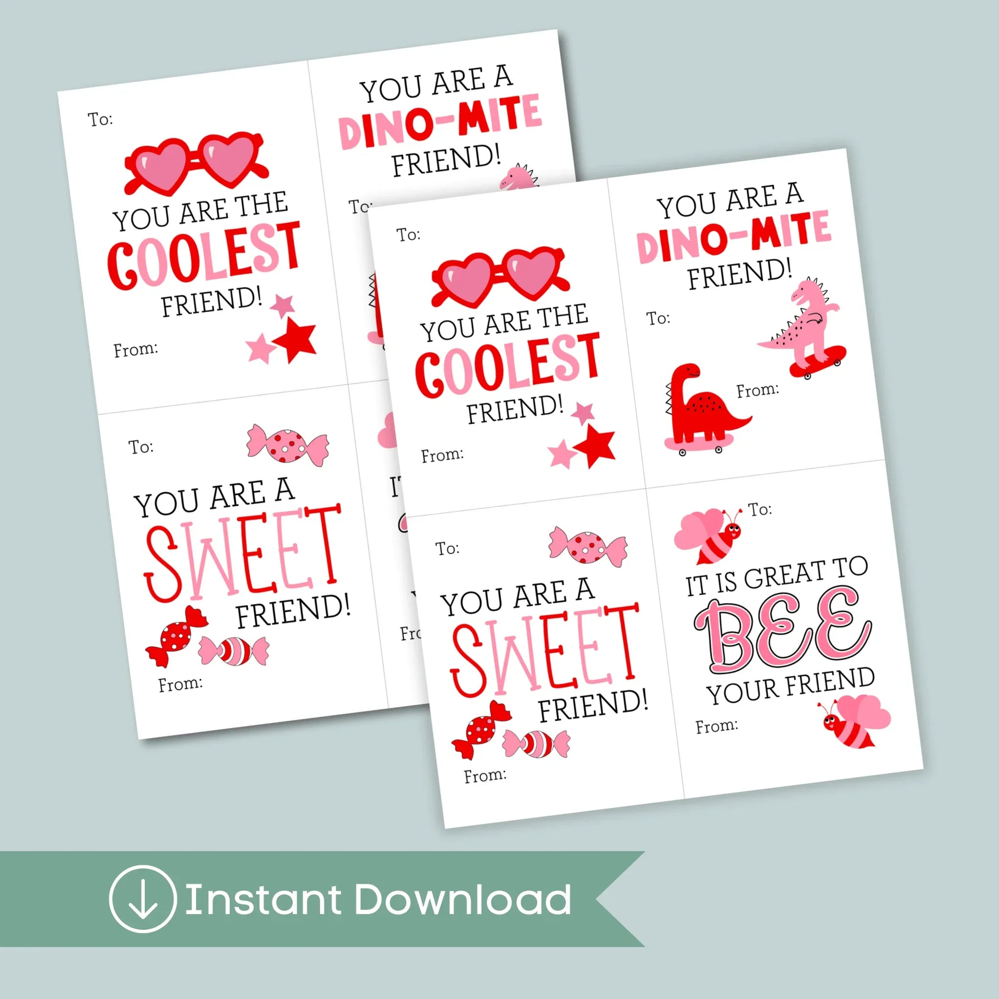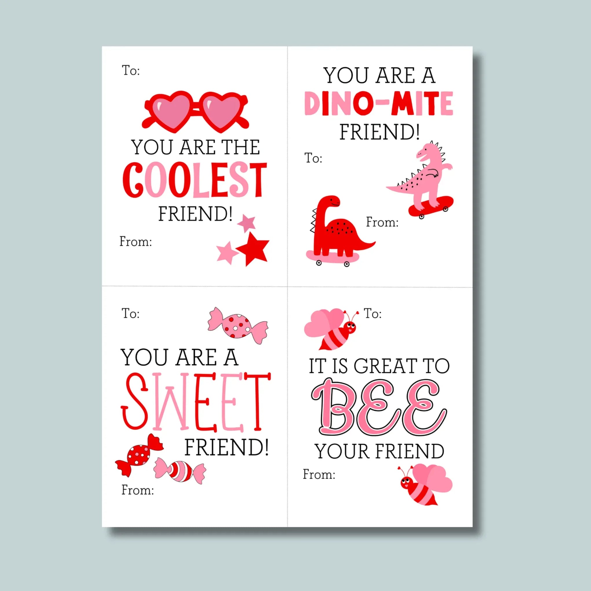 Make Valentine's Day fun and easy with these awesome printable Valentine's Day cards designed especially for kids to give their friends! This printable page features 4 different pun-filled designs perfect for classroom exchanges.