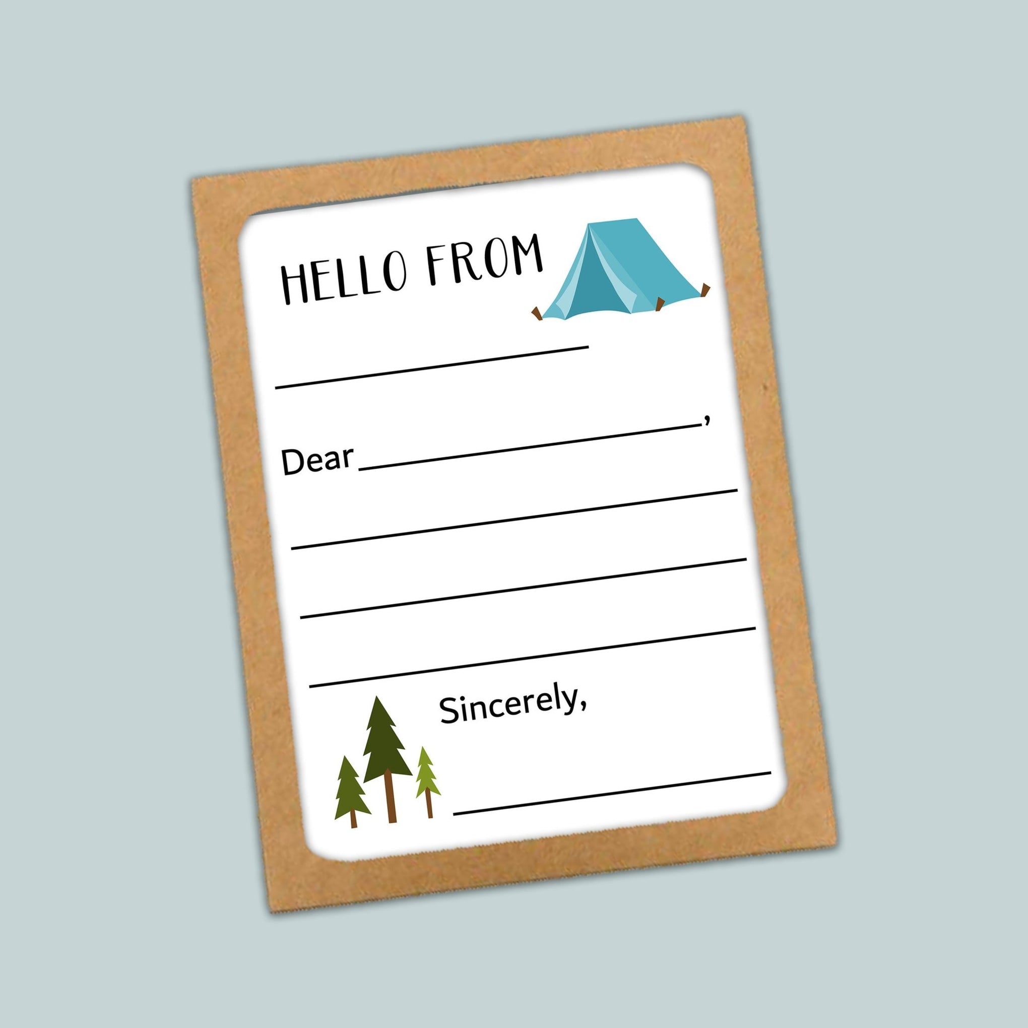 Hand drawn camp design featuring simple lines that make writing notes easy and fun for young children. Fill-in templates help little ones express their thoughts with ease.