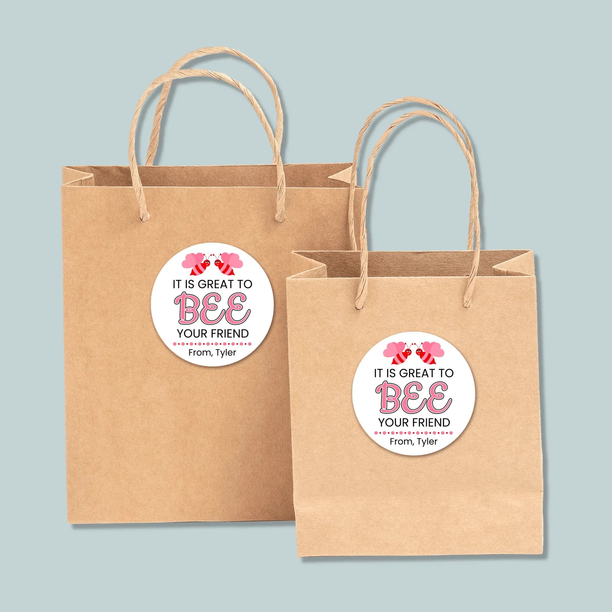 Spread the love this Valentine's Day with adorable round stickers featuring the sweet sentiment "It is great to bee your friend." Each sticker showcases a charming red and pink bee that brings a smile to every Valentine exchange. Personalize with a name or special message to make your classroom valentines, friendship gifts, or party favors extra special. These cute and heartfelt stickers are perfect for celebrating friendship and showing appreciation to those special people in your life.