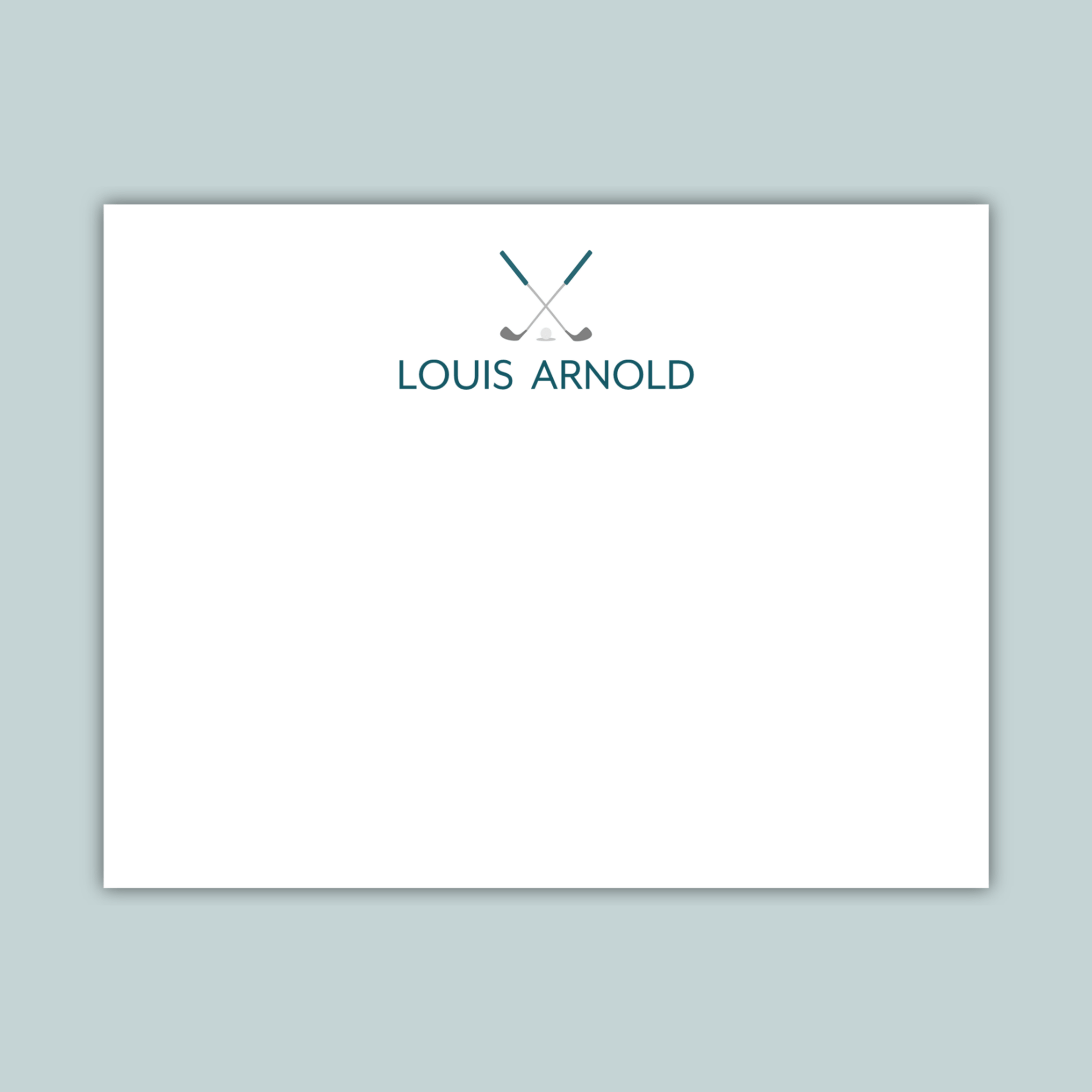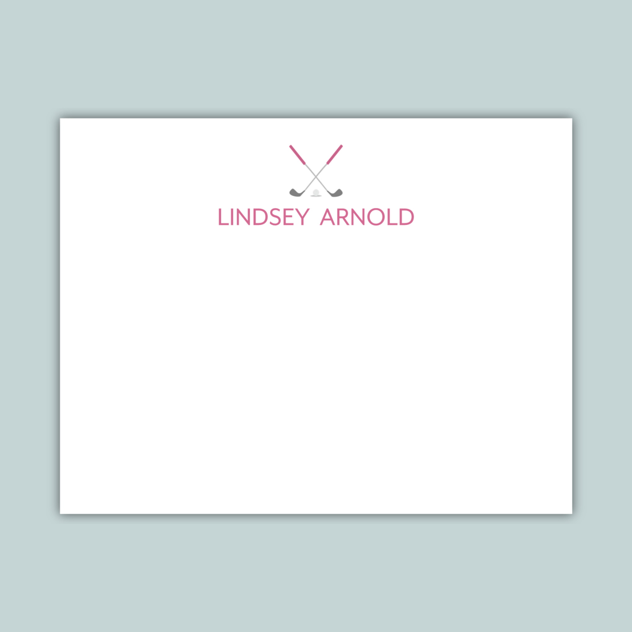 Sporty and stylish, these fun flat note cards feature classic golf club designs available in your choice of pink or teal. Personalize with names or custom text to create stationery perfect for golfers, country club members, golf league players, or anyone who lives for time on the links. Ideal for thank-you notes after a round, golf outing correspondence, tournament messages, or staying connected with fellow golf enthusiasts. A hole-in-one choice for golfers who want their stationery to reflect their favorite pastime with personalized color flair!