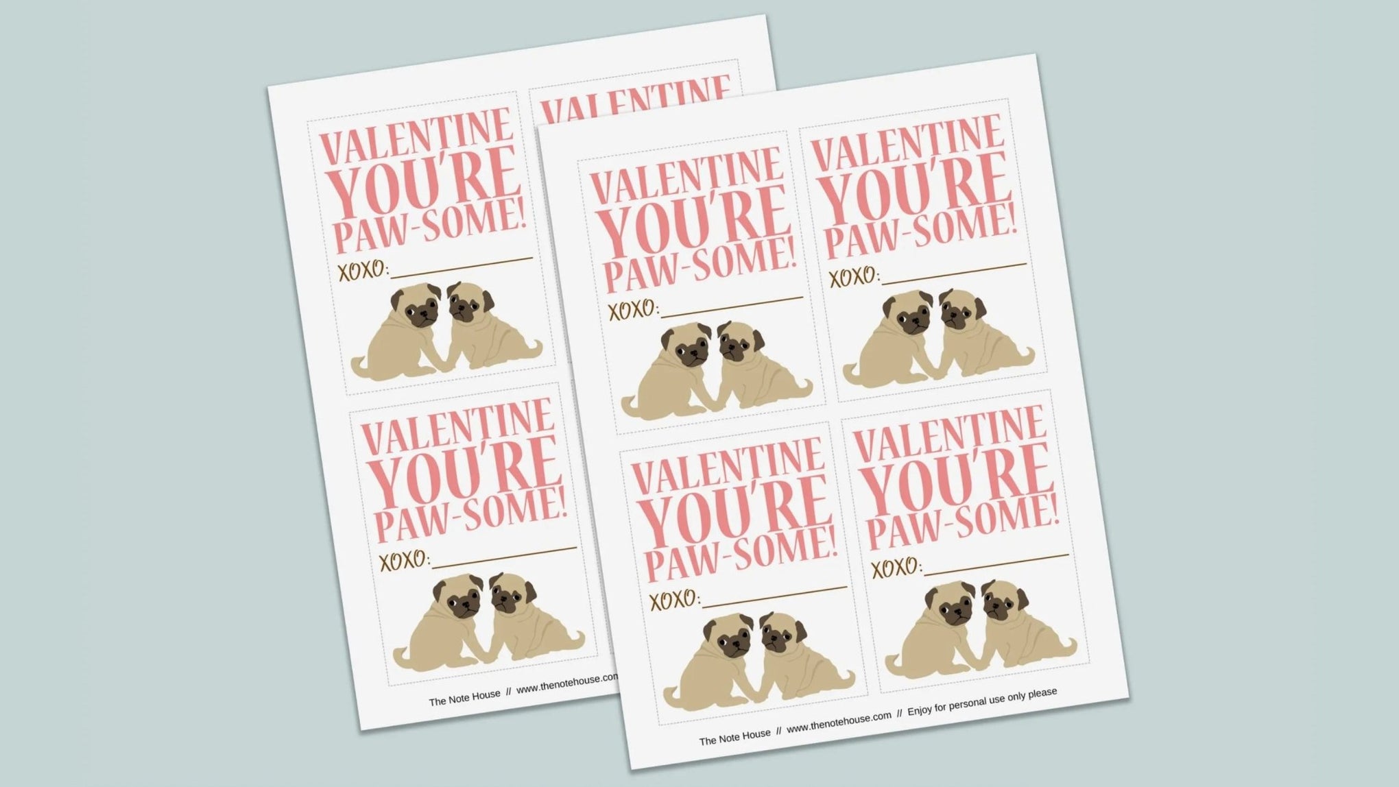 Make Valentine's Day memorable with this adorable pug-themed printable card! Perfect for classroom exchanges, this sweet design features a lovable furry friend delivering a paw-sitively delightful message. The playful 'You're Paw-some' design combines puppy charm and heartwarming puns, ideal for kids who want to share something special with their classmates. This instant digital download lets you print as many cards as you need for the whole class. Spread smiles with this doggone cute Valentine that's sure to stand out among candy hearts and generic cards.