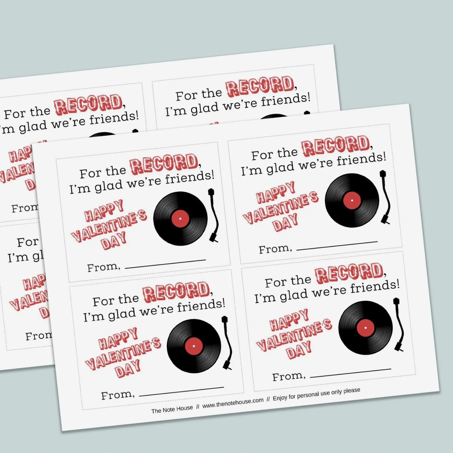 Make Valentine's Day memorable with this groove-worthy printable card! Perfect for classroom exchanges, this sweet design features a retro record player spinning out a tune of love. Combining vintage vibes with musical charm, this design is perfect for kids who want to share something special with their classmates. This instant digital download lets you print as many cards as you need for the whole class. Spread smiles with this totally turntable Valentine that's sure to stand out among candy hearts and generic cards.