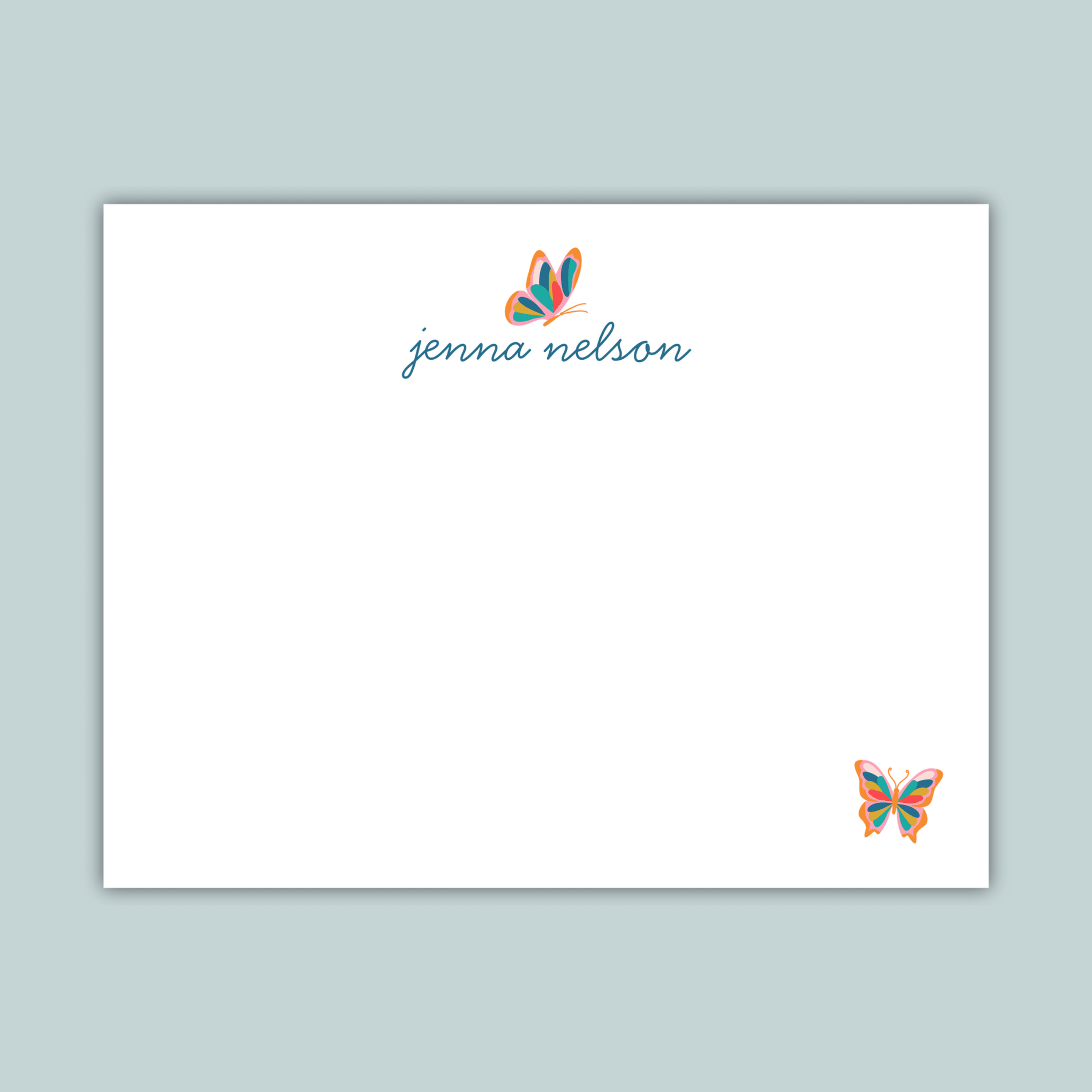 Make every message memorable with vibrant personalized butterfly flat note cards. Each card features a modern, colorful butterfly design that brings joy and beauty to your correspondence. Perfect for thank you notes, quick hellos, or any occasion that calls for a personal touch, these eye-catching cards showcase your unique style. Personalize with your name to make these note cards truly yours. Whether for personal use or as a thoughtful gift, these butterfly cards add a cheerful, artistic flair to your stationery collection.