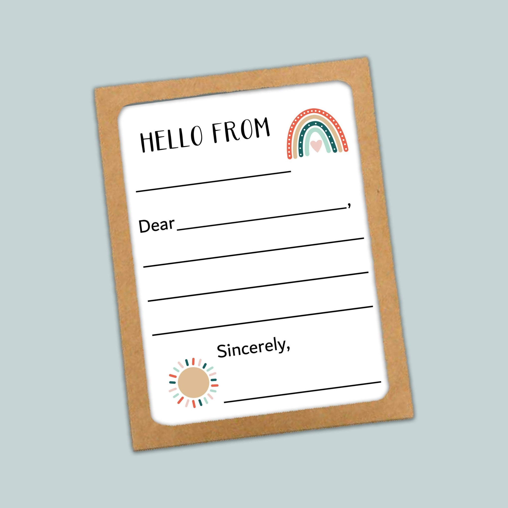 Hand drawn boho rainbow design featuring simple lines that make writing notes easy and fun for young children. Fill-in templates help little ones express their thoughts with ease.
