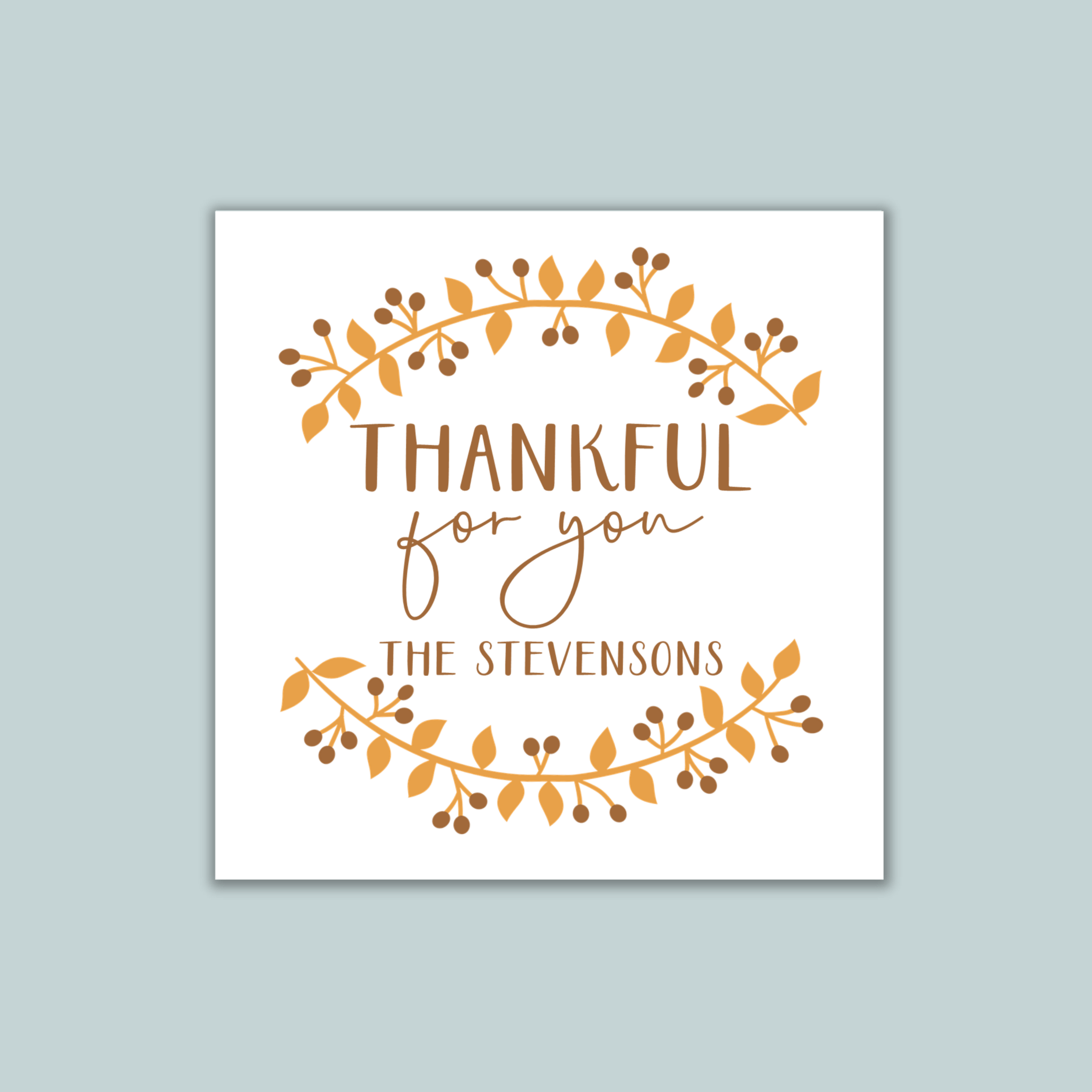 Pretty yellow and brown fall olive branch spreading gratitude during the autumn season! Personalized self-sticking gift labels are fun, functional, and make gift-giving simpler!