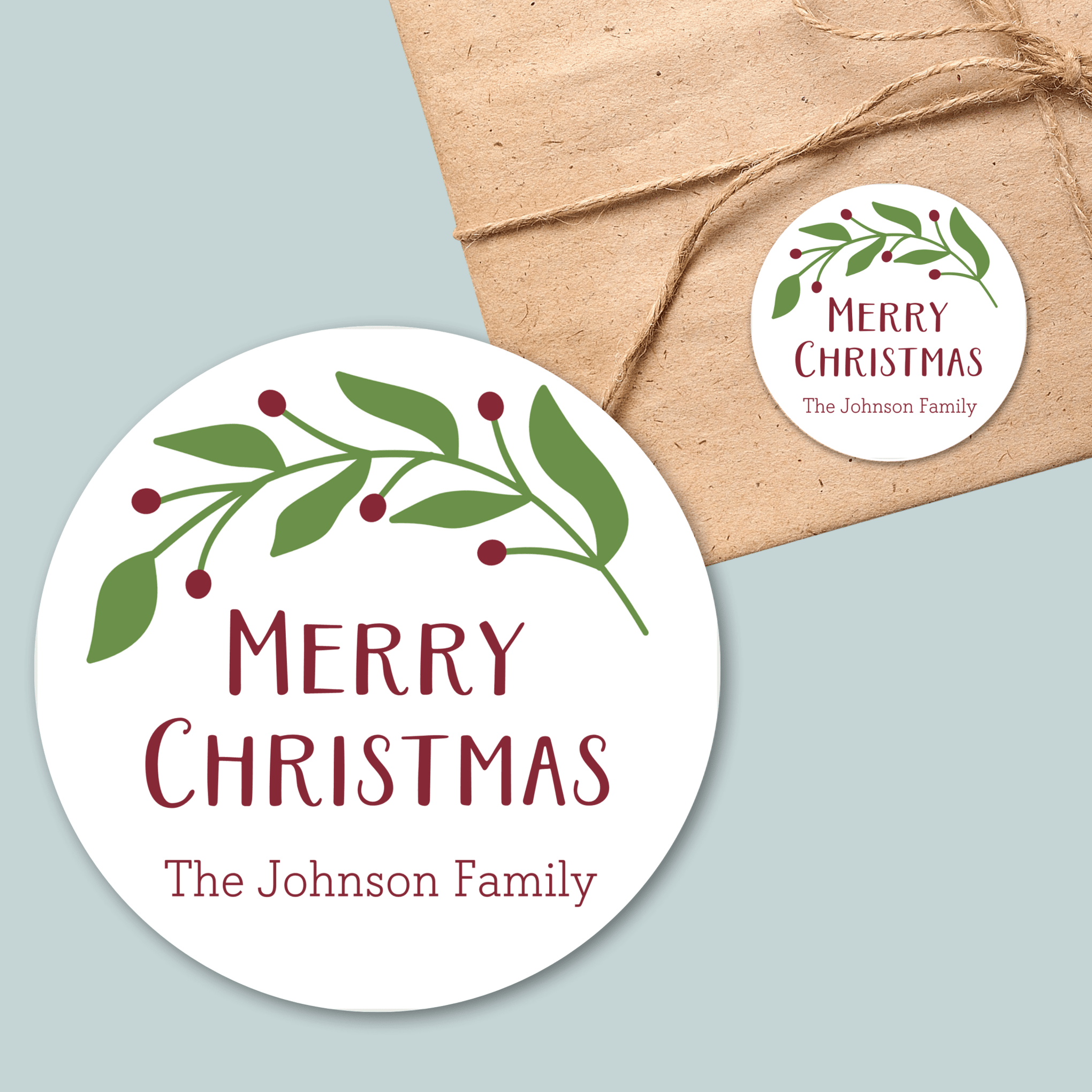 Pretty green branch with berries will look so cute on all of your holiday packages! Personalized self-sticking gift labels are fun, functional, and make gift-giving simpler!