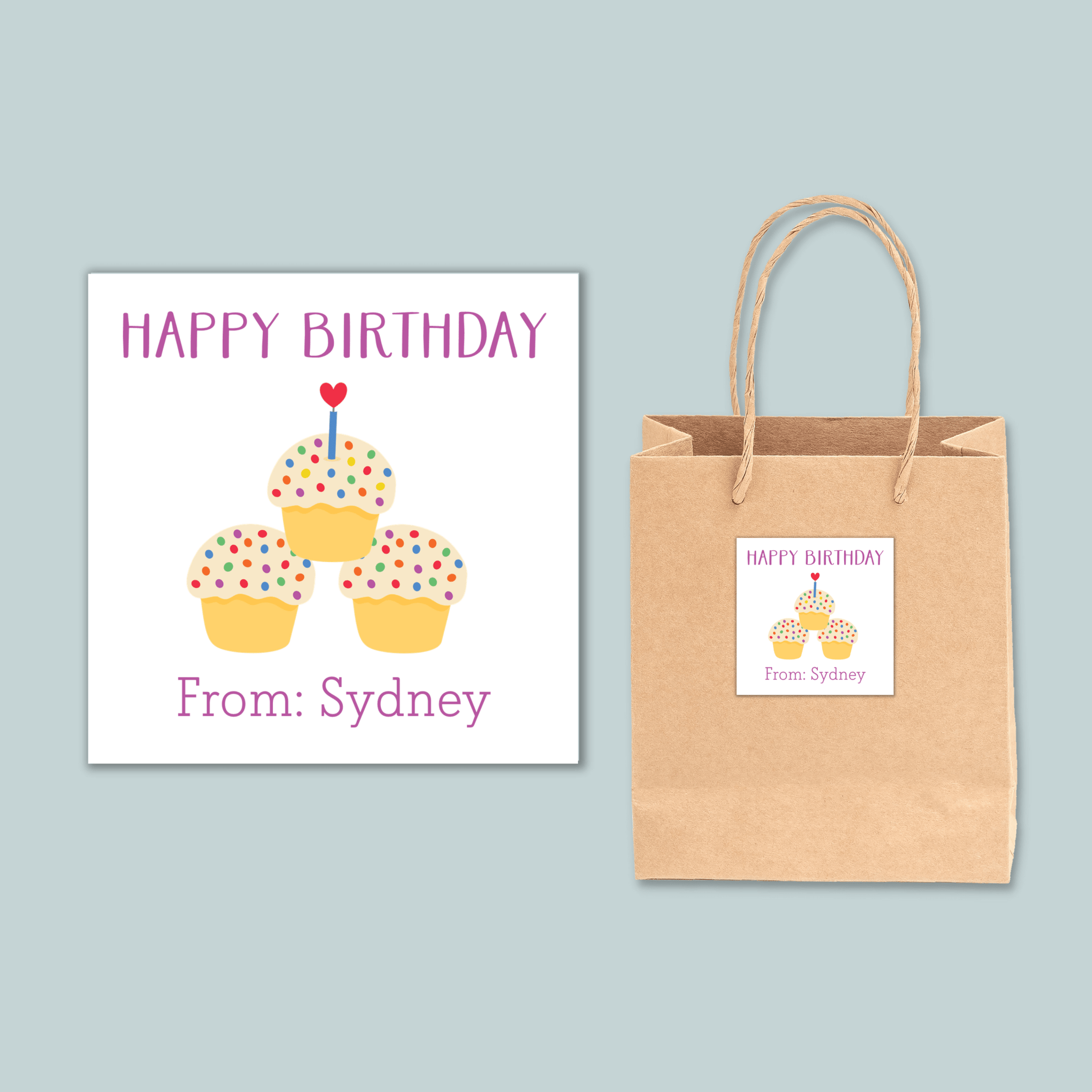 Sweet and whimsical, these personalized stickers feature adorable cupcakes decorated with playful polka dots in a rainbow of colors. Perfect for sealing treat bags, decorating birthday presents, or adding sugary-sweet charm to party favors. Because every birthday deserves a little something sweet and spotty!