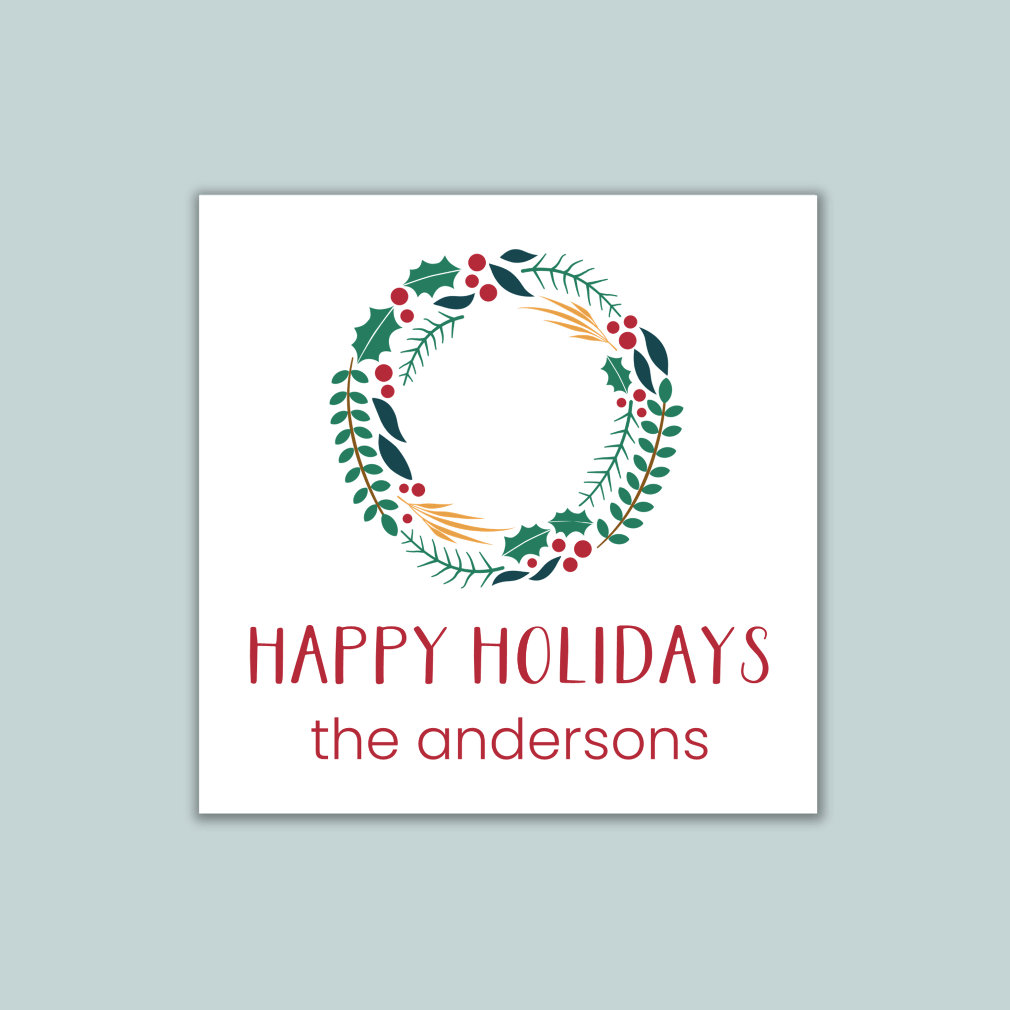 Holly Wreath - Personalized Square Gift Sticker