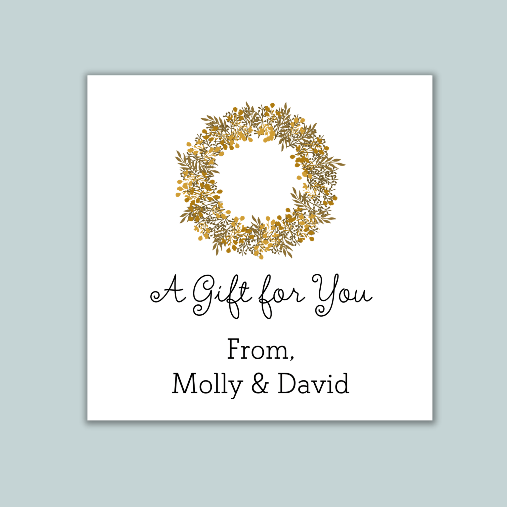 Warm and inviting, these personalized square gift stickers feature a rustic leafy natural wreath above  a heartfelt "A Gift for You" greeting. Customize with names, family names, or special messages to add a personal touch to all your seasonal gift-giving. Perfect for sealing gift bags, decorating presents, embellishing holiday cards, or adding natural, organic charm to packages and party favors. A versatile, inclusive design that welcomes everyone into the spirit of the season with timeless botanical elegance.